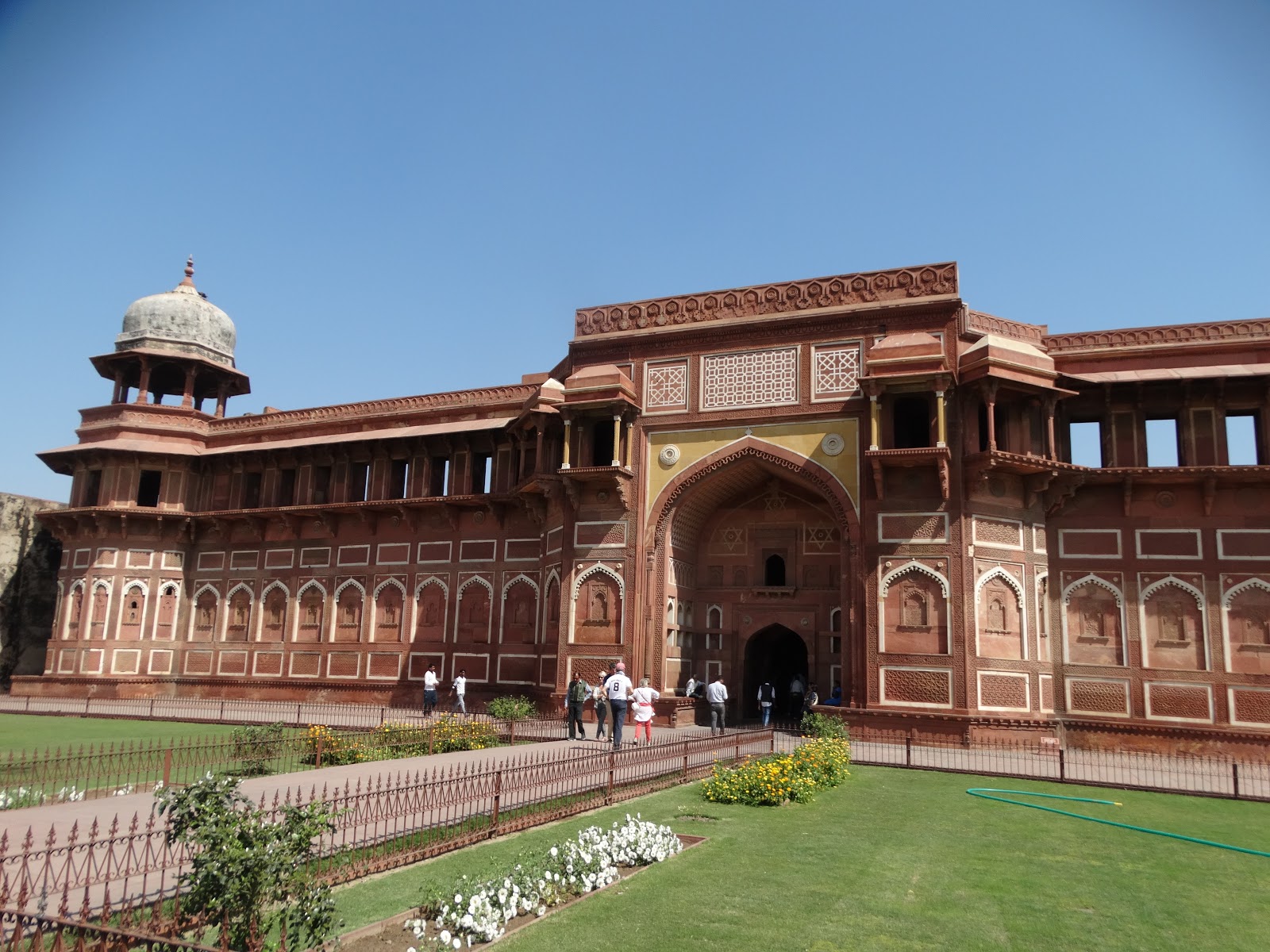 The sightseeing stop was the ‘Ghost’ Capital by the name of Fatehpur Sikri, a (UNESCO) town (1571-1585) that the famous Mogul Akbar wanted to establish, but the lack of water was so severe that the town and the palace were just abandoned. One spot within the palace was a large loop, secured in the ground, where an elephant used to be tied up. If someone was given the death sentence he was stomped to death by this elephant. Near to it, a Parcheesi board was set up, where the emperor played Parcheesi; using live people he ordered to move about on the board. It was not clear to me if he played Parcheesi while the execution was going on or